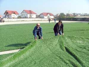 Cele doua terenuri care se construiesc in incinta Complexului Sportiv „Municipal“ sunt in faza de finalizare, cel sintetic urmând sa fie dat in folosinta in aproximativ 15 zile. Infrastructura la ambele terenuri este gata si de ieri s-a inceput sa fie montata iarba sintetica, la aceasta participând si presedintele Marin Condescu. Pe teren se va aplica un strat de nisip cuartos si unul cu granule de cauciuc. La terenul III de iarba s-au incheiat lucrarile de drenaj, fiind aplicate o pâsla speciala si un strat de pamânt fertil, urmând ca in scurt timp sa fie insamântat.