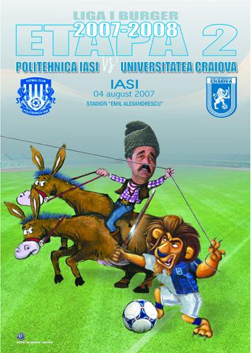 Facţiunea „Gruppo-Maxima“ a realizat deja afişul (foto) care prefaţează meciul Poli Iaşi – Universitatea Craiova, programat sâmbătă. Lângă celebrul leu oltean, de data aceasta apare antrenorul Ionuţ Popa, călare pe doi măgari, iar textul care însoţeşte afişul este un atac la adresa tehnicianului echipei moldovene. „După un meci de vis urmează o deplasare în Moldova, în dulcele târg al Ieşilor. Dulce până să ajungă Ionuţ Popa acolo, un antrenor care mai mult vorbeşte decât antrenează, un individ care vrea să fie tot timpul în lumina reflectoarelor prin declaraţii şi atacuri asupra altor echipe sau persoane. Aşa că am hotărât să îl facem eroul afişului nostru şi să îi comunicăm că este un antrenor de partea a doua a clasamentului care nu va antrena niciodată o echipă de top şi nu va reuşi în viaţa lui o performanţă notabilă“, susţin membrii „Gruppo-Maxima“. Aceştia i-au recomandat lui „nea Popică“ să-şi încerce norocul alături de o trupă umoristică, fiind convinşi că ar avea succes.