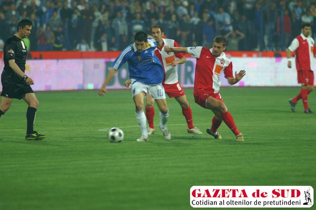 Cântăreţi, artişti, oameni politici, oameni de fotbal sau simpli microbişti au luat aseară cu asalt stadionul „Ion Oblemeco", acesta dovedindu-se prea mic pentru derbiul Universitatea – Dinamo. Startul meciului a fost salutat de Peluza Sud printr-un spectacol pirotehnic deosebit, cu fumigene şi torţe, atmosfera fiind una de spectacol. Prin perdeaua de fum iscată, spectatorii abia au văzut ocazia dinamoviştilor din minutul doi, când senegalezul N’Doye a şutat puternic la colţul scurt, dar Bornescu a fost atent şi a respins în corner. Apoi, a urmat o perioadă de tatonare, cu Universitatea Craiova ceva mai insistentă, fără a pune în pericol poarta lui Lobonţ. „Pisica" a fost însă în pom la faza din mintul 20, când juveţii au reuşit să deschidă scorul. Florin Costea a şutat din afara careului, Lobonţ a respins în lateral, mingea a ajuns la Prepeliţă, acesta din urmă a centrat în