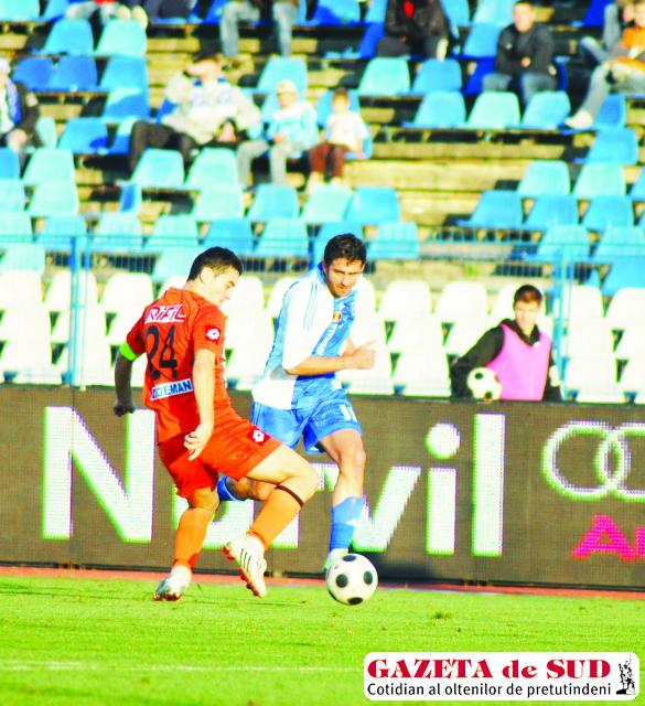 Cu Prepeliţă rezervă, dar fără Trică, D. Stoica şi Dilevski – accidentaţi, ultimul încheind conturile cu fotbalul în acest tur de campionat din cauza unor probleme medicale, Universitatea a început bine meciul şi a punctat prin Mihai Costea, care l-a învins pe Roheţki cu un şut din marginea careului mare. După exprimarea în teren a moldovenilor, se părea că alb-albaştrii vor defila pe „Ion Oblemenco“, dar Ştiinţa a vrut parcă să ne reamintească faptul că nu excelează în apărare. Bădescu (‘9) a fost blocat cu greu, în două rânduri, de defensiva olteană, nemţeanul alegându-se în cele din urmă cu un corner. Moldovenii au executat scurt, mingea a ajuns tot la Bădescu, iar acesta l-a driblat ca în curtea şcolii pe Rose, apoi a şutat pe sub Silviu Lung Jr., egalând situaţia pe tabela de marcaj. Ştiinţa nu a dezarmat şi a continuat să preseze, ieşind la rampă Florin Costea. Acesta a ratat incredibil în minutul 14, şutând peste poartă din opt metri, apoi a avut alte două ocazii bune de a marca. Costea cel mare a avut nevoie de ajutorul apărării nemţene pentru a-i readuce pe juveţi în avantaj, „Diamantul“ şutând plasat de la 16 metri, fără să fie jenat de vreun adversar. Oaspeţii au răspuns prin două şuturi, dar imprecizia lui Cebotaru şi Bădescu l-a salvat pe Silviu Lung Jr.