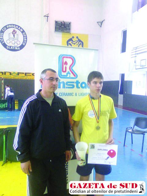 Municipiul Slatina a găzduit, la sfârşitul săptămânii trecute, Campionatul Naţional individual de tenis de masă (juniori II). La simplu, craioveanul Cristian Bărbulescu, de la CSS (antrenor Liviu Nicoli), a trecut pe rând de Florin Spelbuş (CSS LPS Slatina), scor 4-0, Cristian Jumară (CSS Craiova), scor 4-0, Dan Zărnescu (CSU Craiova), scor 4-2, Dan Daniel (CSS LPS Bistriţa), scor 4-2, şi Alin Spelbuş (CSS LPS Slatina), scor 4-2, obţinând prima medalie de aur a întrecerii. Cea de-a doua a fost câştigată la dublu băieţi, perechea Cristian Bărbulescu (CSS Craiova) – Alin Spelbuş (CSS LPS Slatina) ajungând în finală după ce a trecut cu 3-0 de perechea C. Jumară (CSS Craiova) – I. Daniel (CSS Târgu Mureş) şi cu 3-2 de A. Margin (CSS Zalău) – Şt. Ghinea (Câmpulung). În ultimul act al întrecerii, oltenii au învins perechea bistriţeană D. Daniel – A. Costea cu 3-2, urcând pe prima treaptă a podiumului. La dublu mixt, Bărbulescu a făcut pereche cu Bernadette Balint (CSS Arad). Cei doi au pierdut în semifinale la perechea de la CSS Slatina, A. Spelubuş – I. Ciobanu, scor 0-3, şi a trebuit să se mulţumească doar cu medaliile de bronz. „Am obţinut rezultate bune, care ne dau încredere pentru concursurile următoare. La sfârşitul săptămânii acesteia urmează Campionatul Naţional de juniori I de la Zalău, iar peste două săptămâni Cristi Bărbulescu va merge la un concurs internaţional la Zagreb. Pe 24-27 iunie va avea loc Campionatul Balcanic, la Slatina, iar în perioada 16-25 iulie se vor desfăşura Campionatele Europene de cadeţi de la Istanbul – Turcia, unde sperăm la noi medalii", a declarat Liviu Nicoli, antrenor la CSS Craiova. La simplu, Cristian Jumară (antrenor Olimpiu Oproiu) s-a clasat pe locul 12, iar la dublu, alături de Istvan Daniel (Târgu Mureş), pe locurile 5-8.