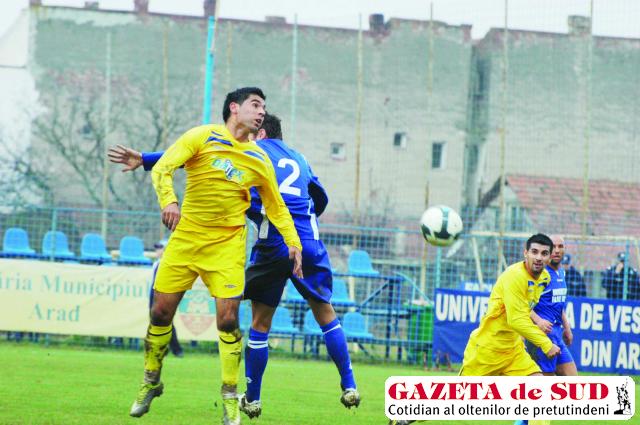 Elevii lui „Jerry“ Gane au început în forţă partida cu ACU Arad, Alex Neacşa (‘3) şi Laurenţiu Boroiban (‘8) dându-i primele emoţii portarului Rusu. Replica „studenţilor“ arădeni a venit în minutul 14, când Lupaşcu a prins un şut bun de la 12-13 metri, dar Mihai Neagoe a fost la post, respingând în corner. „Găzarii“ au continuat să fie periculoşi, atacanţii olteni au „hărţuit“ în permanenţă defensiva adversă şi până la urmă aceasta a cedat în minutul 17, când Nicolau l-a faultat în careu pe Boroiban, tot el transformând penaltiul acordat de Ludovic Uihelyi. Deşi lucrurile au continuat să le fie favorabile, elevii lui „Jerry“ Gane nu au intrat cu avantaj la cabine, în minutul 44 juniorul Tau reluând imparabil o centrare de pe partea stângă a lui Ciubăncan.