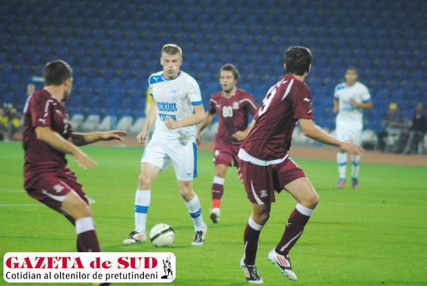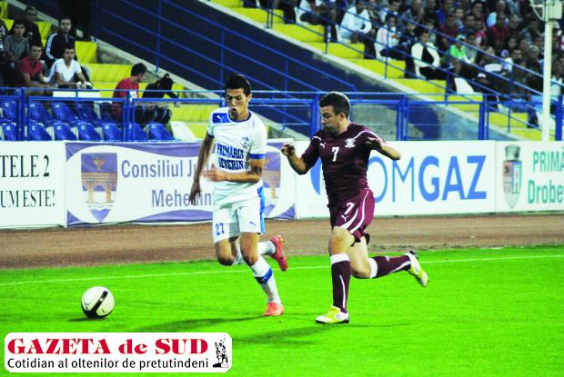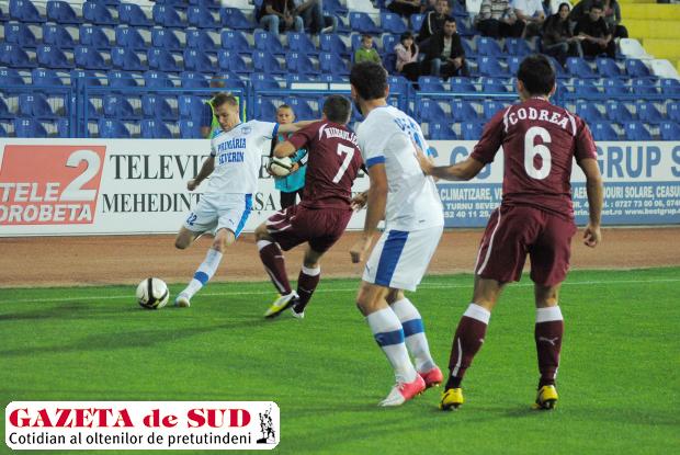 le-au pus probleme mari, Arnăutu irosind o ocazie imensă în minutul şapte, când, servit excelent de Cosmin Vancea, l-a ţintit pe portarul Pecanha din şase metri. Pe fondul unui joc pe contre, Rapidul şi-a arătat experienţa şi a reuşit să marcheze prin Teixeira, care a şutat din 16 metri la colţul din dreapta porţii lui Andrei Marinescu (‘23). În prima repriză s-a consumat o fază care ar fi putut schimba cursul jocului dacă arbitrul central Lucian Rusandu ar fi cântărit corect situaţia şi nu ar fi arătat un pic de „simpatie“ pentru giuleşteni. Fundaşul central al Rapidului, Oros, l-a împins şi l-a împiedicat de la spate pe Arnăutu, care scăpase singur cu portarul Pecanha, dar „centralul“ i-a acordat doar cartonaşul galben, deşi s-ar fi impus cel roşu pentru că era ultimul apărător. Şi în repriza a doua a fost un joc plăcut, şi, de asemenea, o fază litigioasă, în ultimul minut Rusandu anulând golul egalizator al severinenilor pentru un presupus fault în atac al lui Marius Bălău. În final, a fost 1-0 pentru Rapid, iar severinenilor nu le rămâne decât să se pună la punct în cele două săptămâni de pauză cauzată de jocurile României cu Turcia şi Olanda, din preliminariile CM din 2014.