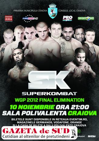 Circuitul SuperKombat al promotorului Eduard Irimia a ajuns la penultimul episod pe 2012, SuperKombat Final Elimination urmând a avea loc sâmbătă, de la ora 21.00, la Craiova, ocazie cu care se va inaugura noua Sală Polivalentă, cu o capacitate de 4.000 de locuri. Deşi printre sportivii implicaţi în partidele eliminatorii se vor afla bielorusul Alexey Ignaşov sau francezul Freddy Kemayo, principalul eveniment al serii va fi reprezentat de un dublu meci, în care Cătălin Moroşanu şi Ionuţ Iftimoaie, vedetele circuitului SuperKombat, ultimul revenind în ring după o pauză de mai bine de un an, îşi vor măsura forţele cu doi monştri greu de ucis din SUA, Carter Williams şi James „The Beast“ Wilson. Românii sunt