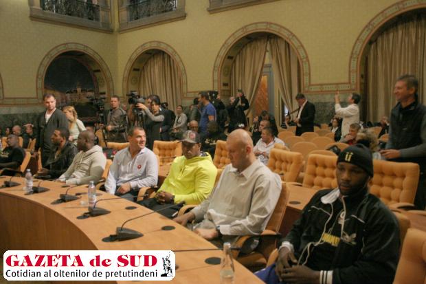 Eroii galei au avut o zi încărcată vineri. Imediat după prânz, au vizitat Primăria Craiova şi s-au arătat impresionaţi de sala de consiliu, făcând zeci de fotografii pentru a le avea ca amintire. „Am vorbit cu Eduard Irimia şi am zis că vreau să bifez un meci în faţa oltenilor“, a spus emoţionat Ionuţ Iftimoaie. Craioveanul Radu Spinghel, stabilit de ani buni în SUA, consideră că oraşul copilăriei sale este grozav. Sportivii, veniţi din toate colţurile lumii, s-au fotografiat cu primarul Lia Olguţa Vasilescu, aceasta din urmă spunându-le că este o amatoare de sporturi de contact deoarece a practicat karate şi are centura 2 Dan.