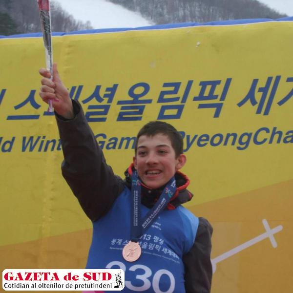 Sportivul craiovean Theodor Matican a obţinut medalia de bronz la proba de slalom din cadrul Jocurilor Mondiale de Iarnă „Special Olympics” încheiate recent la Pyeong Chang (Coreea de Sud). Participant în premieră la o asemenea competiţie de anvergură sportivul în vârstă de 15 ani a mai participat în alte două probe, la SuperUriaş, unde s-a clasat pe locul patru, şi la Slalom Uriaş, unde a obţinut locul şapte. Un amplu reportaj veţi citi în GdS de mâine.