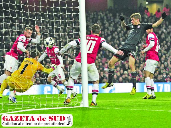 Bayern München a încântat marţi seară, pe „Emirates Stadium“, predând o lecţie de eficienţă britanicilor de la Arsenal Londra. Bavarezii s-au impus cu scorul de 3-1 (2-0), în prima manşă a optimilor de finală ale Ligii Campionilor, golurile învingătorilor fiind marcate de Kroos (‘7), Muller (‘21) şi Mandzukici (‘77), replica „tunarilor“ venind de la Podolski (‘55).