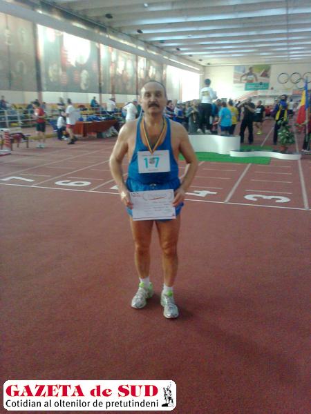 Adrian Neagu, legitimat la CS Universitatea Craiova, a concurat la categoria +55 de ani şi a câştigat trei medalii de aur, în probele de 60 metri plat, săritura în lungime şi triplusalt. Medaliat cu aur anul trecut atât la Europene cât şi la Mondiale, Neagu a realizat la naţionale cea mai bună performanţă mondială în 2013 la săritura în lungime – 5,87 metri – la categoria sa de vârstă. Dumitru Călina, de la CSM Craiova, a câştigat medalia de bronz la tot la categoria +55 de ani, dar în proba de 3.000 de metri. Atletul, de 56 de ani, care are 12 curse de maraton alergate, se mândreşte că recent a primit un Certificat de Excelenţă din partea lui Sorin Matei, preşedintele Federaţiei Române de Atletism (FRA), pentru activitatea sa în cadrul Asociaţiei Atleţilor Masters (veterani) din cadrul FRA. Dacă în unele competiţii anterioare Dumitru Călina alerga în tandem cu fiul său, Florian (12 ani), acum, juniorul a participat sâmbătă la alt concurs, dar de matematică, etapa judeţeană a Olimpiadei Naţionale. „A fost chiar tare senzaţia pe care am avut-o la plecarea spre Bucureşti. I-am strâns mâna fiului meu, i-am urat baftă, iar el mi-a zis că îmi ţine pumnii şi orice rezultat vom obţine constituie un real succes“, a spus Dumitru Călina.