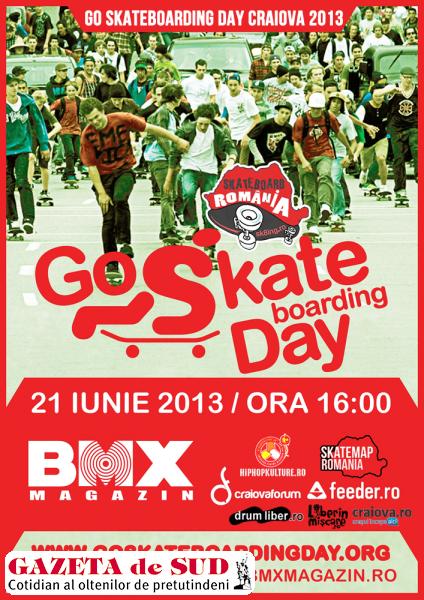 Craiova va găzdui vineri, 21 iunie, primul eveniment de skateboard organizat oraş, intitulat „Go Skateboarding Day”. Concursul, dedicat tuturor categoriilor de vârstă, se va desfăşura pe esplanada Teatrului Naţional „Marin Sorescu”, începând cu ora 15:00, în organizarea Sk8ing.ro, în parteneriat cu Direcţia Judeţeană pentru Tineret şi Sport Dolj şi asociaţia Streets. Se va concura la mai multe categorii de vârstă: copii până la 12 ani, 12-16 ani şi peste 16 ani. Organizatorii au precizat că participanţii care nu au împlinit încă vârsta de 18 ani trebuie să se prezinte cu părinţii, care trebuie să îşi dea acordul de participare pe formularul de înscriere.