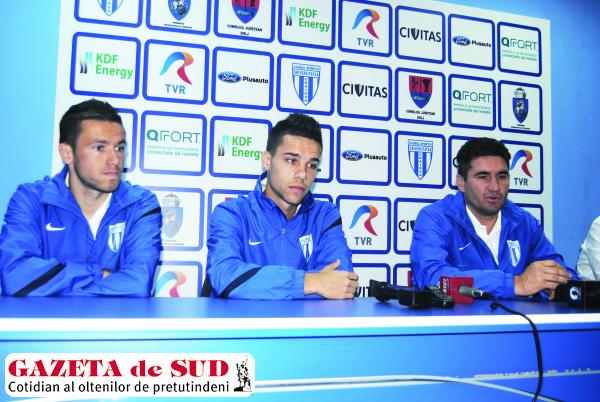 CS Universitatea Craiova a susţinut ieri, la stadionul „Ion Oblemenco“, o conferinţă de presă, în care antrenorul Ovidiu Stângă şi jucătorii Andrei Sin şi Gabriel Precup au prefaţat întâlnirea de mâine, de la ora 21.00 (TVR 1), cu FC Olt Slatina, dispută contând pentru runda a 8-a din Liga a II-a, seria a 2-a.