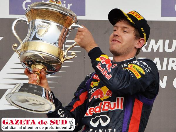 Pilotul german al echipei Red Bull, Sebastian Vettel, a câştigat, astăzi, Marele Premiu de Formula 1 al Indiei şi a devenit campion mondial pentru a patra oară consecutiv, cu trei curse rămase de disputat până la finalul sezonului, informează Mediafax. La New Delhi, el a fost urmat de germanul Nico Rosbeg (Mercedes) şi de francezul Romain Grosjean (Lotus-Renault). Al patrulea a trecut linia de sosire brazilianul Felipe Massa (Ferrari), al cincilea a fost mexicanul Sergio Perez (McLaren-Mercedes), iar pe locul şase s-a clasat britanicul Lewis Hamilton (Mercedes).