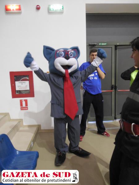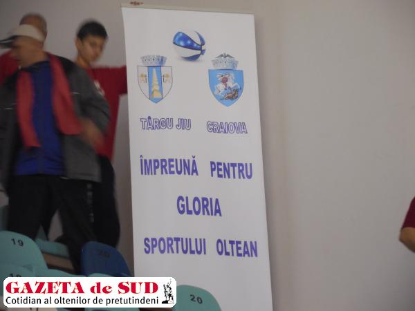 Gorjenii au afişat un banner pe care erau inscripţionate siglele celor două formaţii şi mesajul „Împreună pentru gloria sportului oltean”.