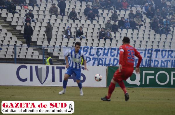 La partidă au asistat aproximativ 400 de suporteri, o parte dintre aceştia contestându-l pe finanţatorul celeilalte echipe din Craiova, FC Universitatea, Adrian Mititelu. Fanii de la tribuna a II-a au afişat două mesaje înainte de primul fluier: „Oblemenco, istorie, tradiţie, noi luptăm din generaţie în generaţie” şi „Neamţu, Oţet, Oblemenco – simbolurile eterne, istoria vă obligă să luptaţi pentru ele”.