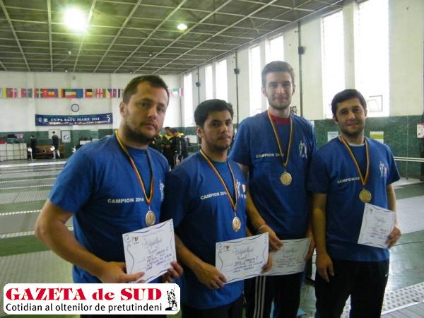 Echipa masculină de scrimă CS Universitatea Craiova a câştigat ieri medalia de aur la Superliga Naţională pe echipe de la Satu Mare. Elevii lui Dumitru Popescu au obţinut următoarele rezultate: 45-33 cu UNEFS București, 43-39 cu CSM Satu Mare, 45-43 cu LPS Craiova, 45-15 cu Univ. Craiova2, 45-37 cu CSU Târgu Mureș, 45-38 cu CSM Oradea și 45-43 cu CS Satu Mare. Din echipă campioană, care a cucerit titlul pentru al doilea an consecutiv, au făcut parte sportivii: Alin Mitrică, Dorian Pîrvan, Alin Sbîrcia și Ionuţ Trandafirescu.