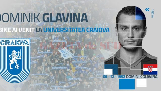 „Clubul Universitatea Craiova anunță faptul că l-a transferat pe atacantul croat Dominik Glavina, urmând ca acesta să îmbrace tricoul alb-albastru pentru cel puțin patru luni, cu opțiune de prelungire a contractului pe trei ani. Bine ai venit, Dominik și cât mai multe performanțe în familia Științei!