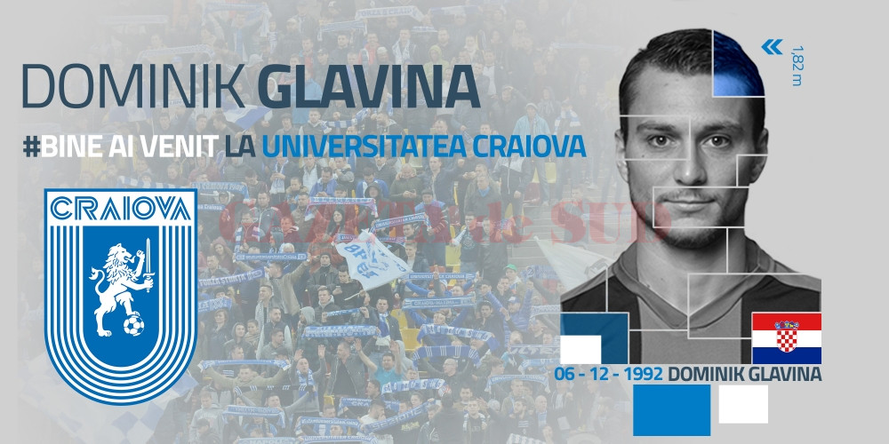 „Clubul Universitatea Craiova anunță faptul că l-a transferat pe atacantul croat Dominik Glavina, urmând ca acesta să îmbrace tricoul alb-albastru pentru cel puțin patru luni, cu opțiune de prelungire a contractului pe trei ani. Bine ai venit, Dominik și cât mai multe performanțe în familia Științei!