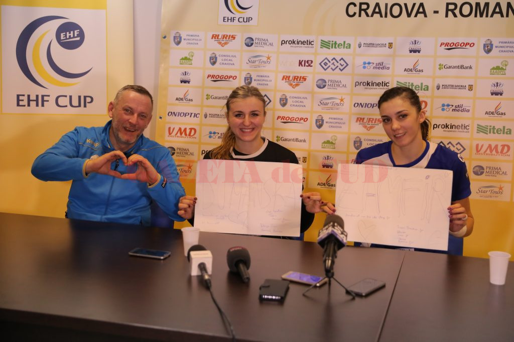 La conferinţa de presă de la finalul meciului, jucătoarele Yulia Dumanska şi Cristina Florianu au venit cu bannere cu mesaje de la fani, pe care le-au arătat.