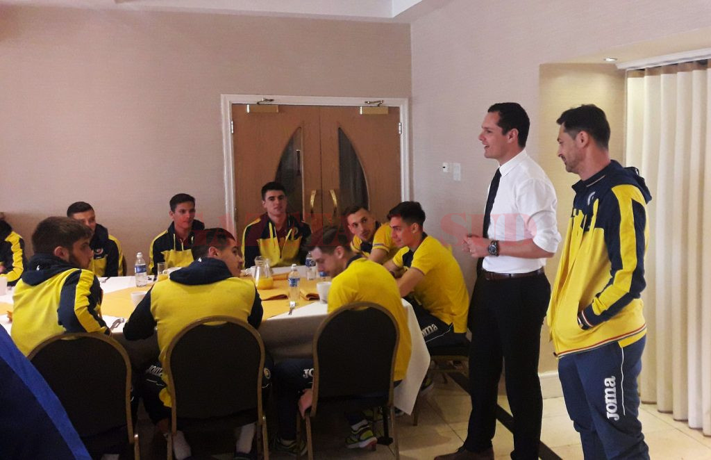 Naționala de tineret a României a ajuns marți în cantonamentul de la Wolverhampton după un zbor de trei ore și jumătate. În Anglia, managerul operațional al loturilor U21 și de juniori, Vlad Munteanu, l-a prezentat jucătorilor pe Mirel Rădoi (foto dreapta), noul manager sportiv de la lotul Under 21 al României. Fostul internațional român le-a vorbit câteva minute tricolorilor și le-a transmis că va fi alături de ei în orice problemă vor avea. „Tineretul“ a susținut deja două ședințe de pregătire în baza de cantonament a formației Wolverhampton. La primul antrenament de pe teren britanic, desfășurat pe un teren sintetic, a lipsit Andrei Burlacu, mijlocașul Universității Craiova fiind menajat din cauza unor probleme musculare. Marți seară și-au făcut prezența în cantonament mijlocașul Mihai Dobre (Rochdale) și atacantul Adrian Petre (Esbjerg). În schimb, Ionuț Radu, căpitanul selecționatei U21, s-a alăturat lotului imediat după aterizarea în Anglia și s-a antrenat cot la cot cu colegii lui. Naționala Under 21 a României va susține un cantonament de o săptămână în Anglia, perioadă în care va disputa și două meciuri amicale: cu Anglia U21, sâmbătă, de la ora 19.15, și cu Wolverhampton U23, marți, 27 martie, de la ora 16.00.