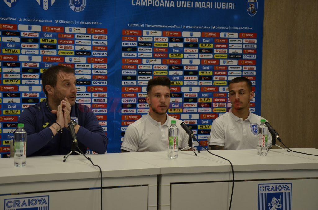 Universitatea Craiova a susținut vineri o conferință de presă în care antrenorul Devis Mangia și mijlocașii Alex Băluță și Alex Mitriță au prefațat partida cu Poli Iași, programată sâmbătă, de la ora 20.45, pe stadionul „Ion Oblemenco”, contând pentru etapa a 5-a din play-off-ul Ligii I. Strategul Științei a explicat că nu poate conta pe serviciile lui Renato Kelic și Ivan Martic, ambii accidentați, și nici pe Alex Băluță, suspendat de club pentru indisciplină, dar a punctat că nu concepe să nu fie bifată victoria. La rândul său, Mitriță a explicat că el și colegii din atac își dores foarte mult să pună capăt „secetei” și să marcheze cât mai mult începând cu acest joc. În ceea ce-l privește pe Alex Băluță, acesta a punctat că le va ține pumnii colegilor săi.