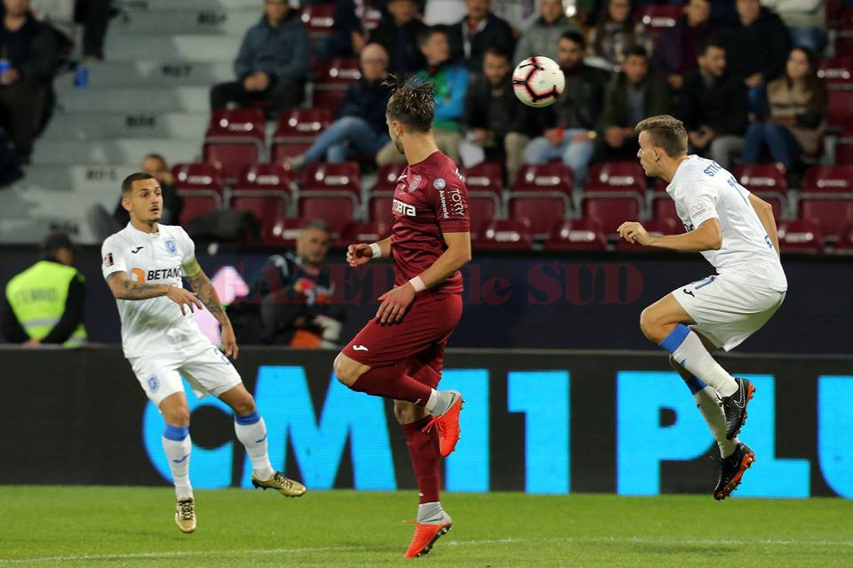 Universitatea Craiova a făcut o partidă bună ieri seară, în Ardeal, dar nu s-a ales decât cu un punct din confruntarea cu CFR Cluj, care nu a arătat deloc precum o campioană. A fost 0-0, cu ocazii mai multe și mai clare în dreptul alb-albaștrilor, care au picat însă cu brio testul eficienței. Elevii lui Devis Mangia au ratat până și o lovitură de pedeapsă, dictată prompt de Kovacs pentru un henț comis de Camora, la o acțiune pe partea dreaptă ce l-a avut în centrul atenției pe Ivan Martic. Lovitura de pedeapsă și-a asumat-o Alex Mitriță, dar se pare că acesta a găsit o „cârtiță“ la punctul cu var sau cel puțin așa părea să spună după ce a șutat mult peste poartă, spre disperarea suporterilor ce au făcut deplasarea la Cluj (’83). Căpitanul a fost vizibil marcat la finalul jocului, supărea fiind prezentă și în rândul fanilor olteni, dar cu siguranță nu va ține prea mult. De remarcat însă lipsa de altruism în unele momente la Mitriță, acesta nefiind prea combinativ cu Elvir Koljic, și absența din joc în câteva rânduri. Koljic a fost „șters“ și din cauza lipsei centrărilor de pe benzi, Bancu și Martic având plusuri mai mult pe faza defensivă, bosniacul coborând în dese rânduri după baloane. De apreciat în schimb evoluția lui Alex Cicâldău, care a alergat foarte mult și a inițiat nenumărate atacuri, dar și cea a lui Alex Mateiu, în contul său fiind trecute multe recuperări.