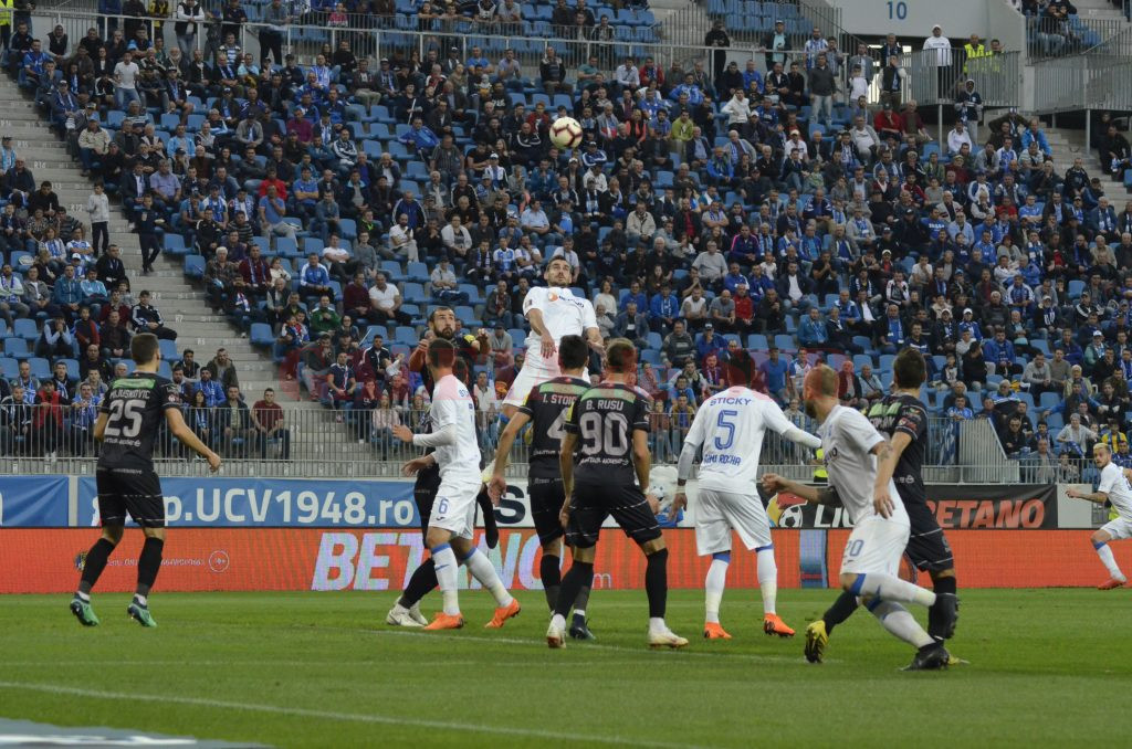 Oaspeții au deschis scorul în urma unei greșeli colective a apărătorilor olteni, Ștefan Blănaru reluând cu capul, de la șase metri, o centrare venită de pe dreapta (‘8, 0-1).