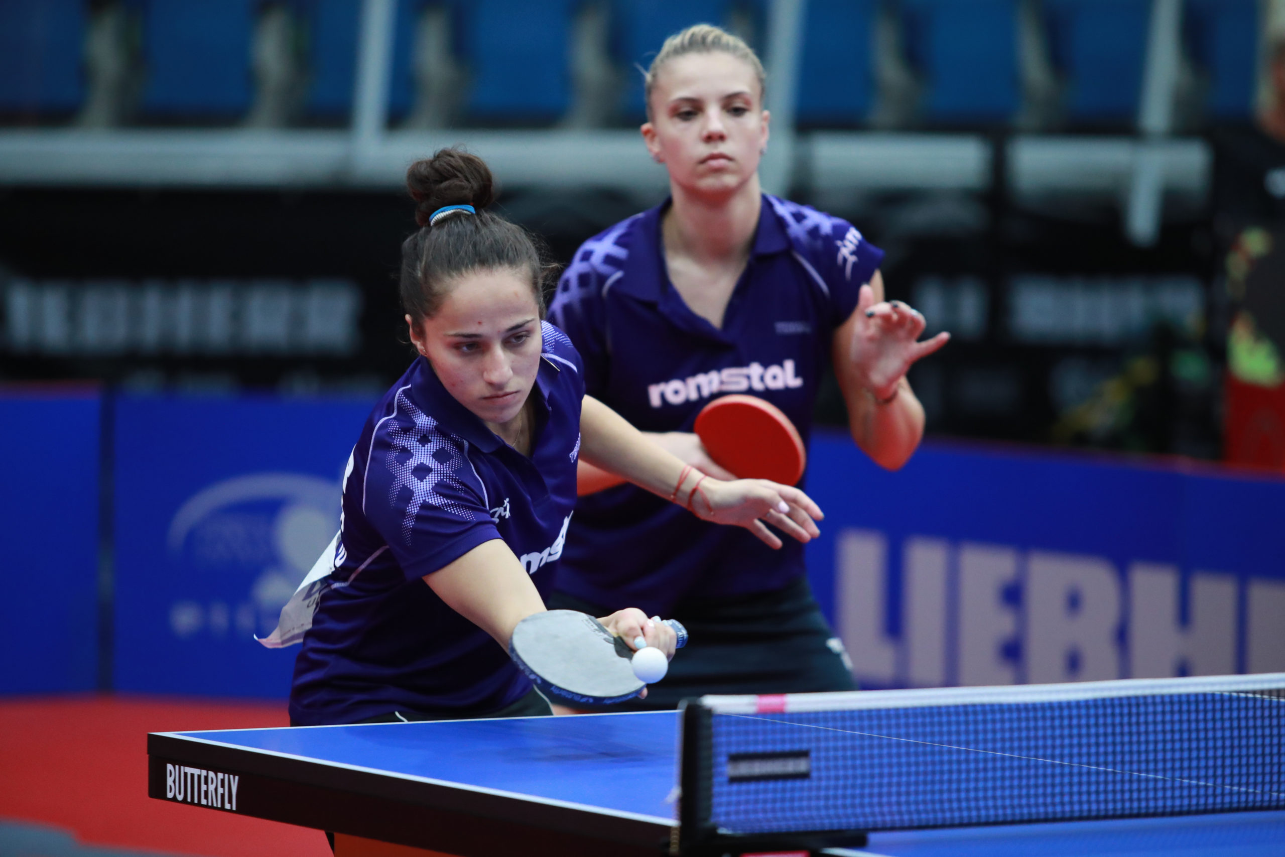 La dublu feminin, pe primul loc al podiumului au urcat Alina Zaharia şi Andreea Dragoman, victorioase în finala cu turcoaicele Simay Kulakceken/Sibel Altinkaya cu 3-2 (11-6, 11-13, 11-7, 11-13, 11-9). Irina Ciobanu şi Adina Diaconu au obţinut bronzul, după ce au cedat în semifinale cu 2-3 în faţa turcoaicelor Kulakceken/Altinkaya.