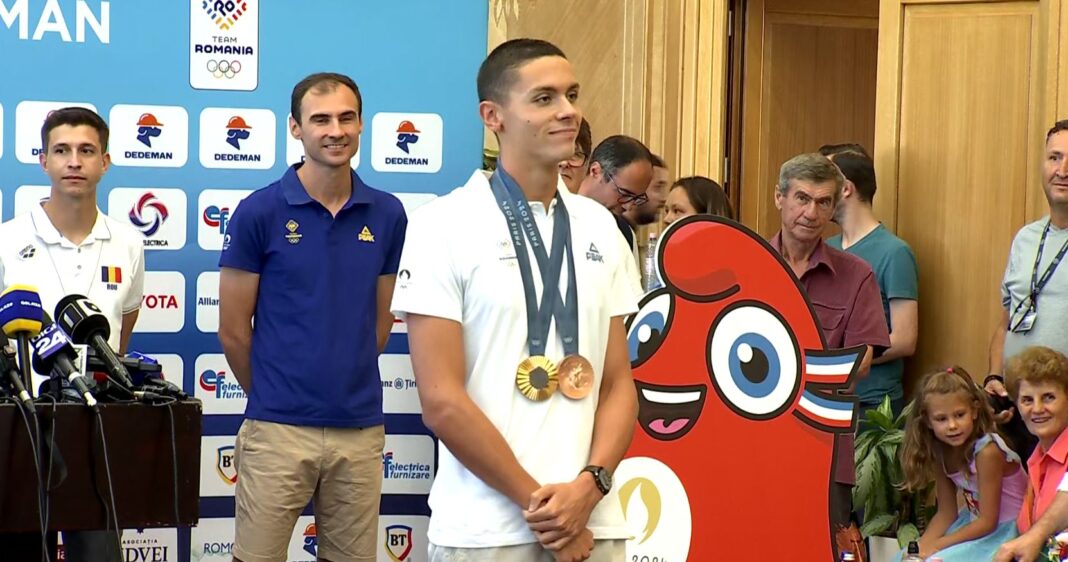 Înotătorul David Popovici a declarat, vineri, la întoarcerea în ţară de la Jocurile Olimpice de la Paris, că pentru medalii, pe care le-a numit „două bucăţi de metal foarte grele”, sportivii muncesc o viaţă la antrenamente.