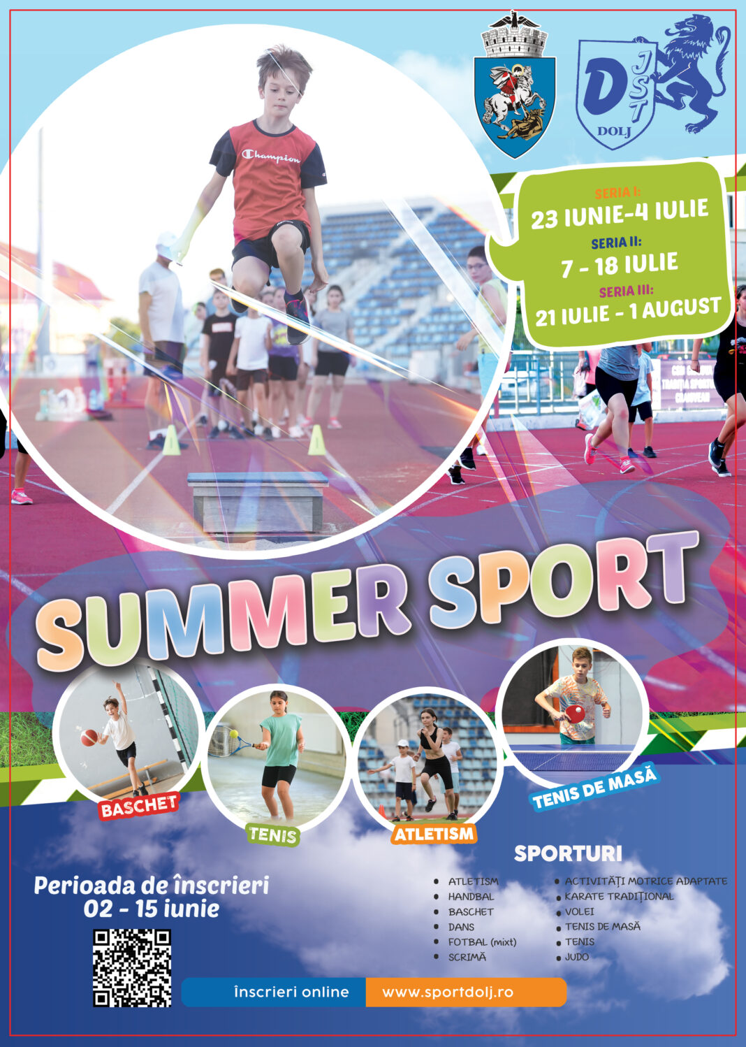 Direcţia Judeţeană pentru Sport și Tineret Dolj, cu sprijinul financiar al Primăriei Craiova și al Consiliului Local Craiova, organizează ediţia a XII-a a programului „Summer Sport”, în perioada 23 iunie – 01 august 2025.