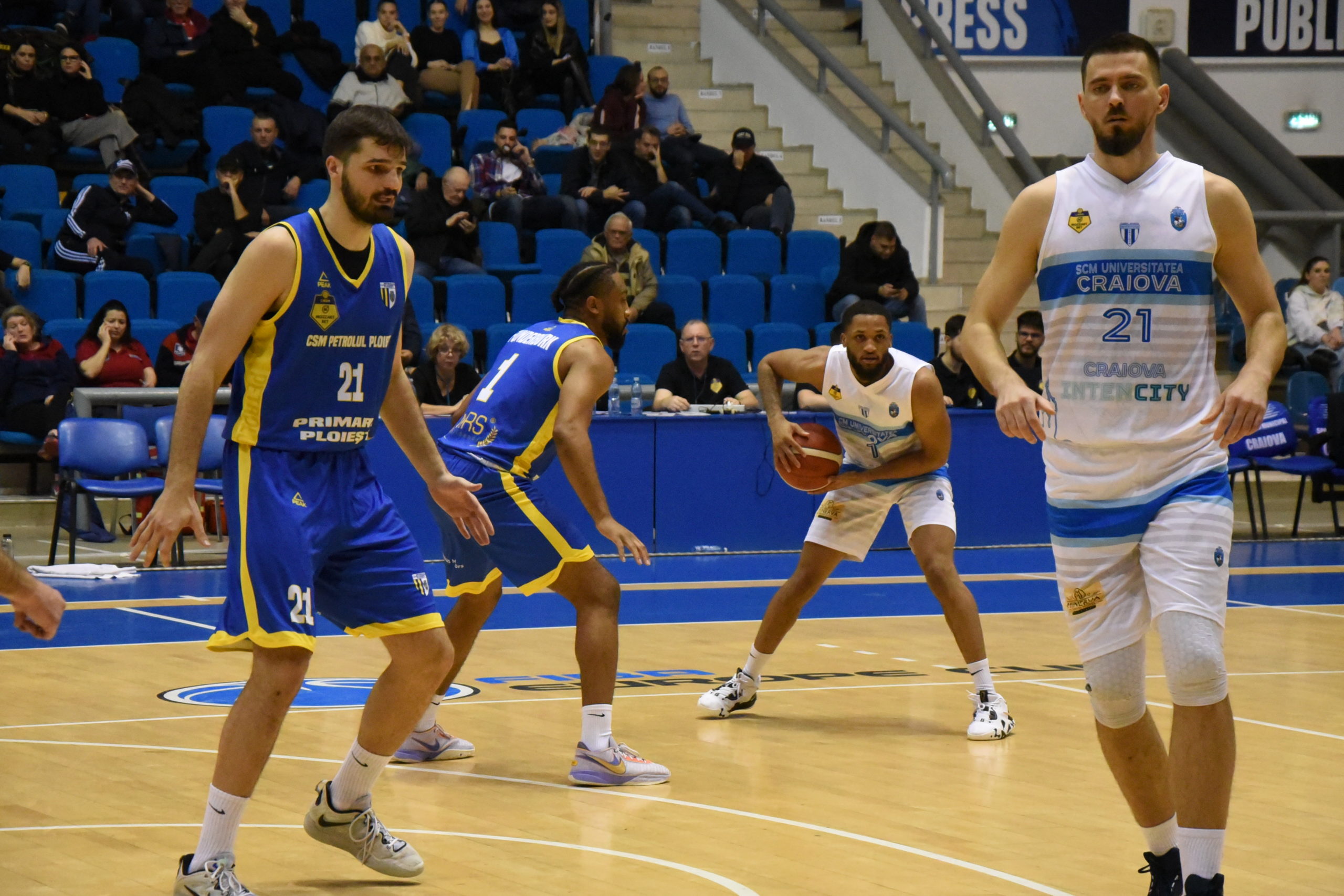 Partida a fost, per total, una destul de săracă în puncte, ambele echipe având procentaje dezastruoase în special de la trei puncte. S-a mers cap la cap o bună perioadă de timp, până în sfertul patru, când oltenii au pus piciorul pe accelerație și s-au distanțat decisiv. Dacă primul act a fost câștigat la limită de Craiova, scor 15-14, cel secund a fost adjudecat de formația vizitatoare la două puncte. Astfel, la cabine s-a intrat cu un avantaj minim al ploieștenilor, scor 32-31.