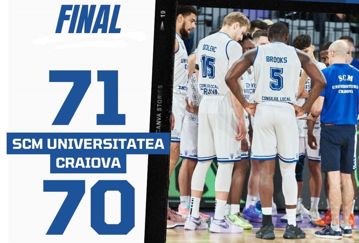 Victorie cu multe emoții pentru SCMU Craiova! Echipa masculina de baschet a câștigat primul meci din actuala ediție a LNBM, în etapa a doua, scor 71-70 cu Dinamo și astfel s-a revanșat în fața propriilor fani pentru eșecul din runda precedentă cu Rapid.