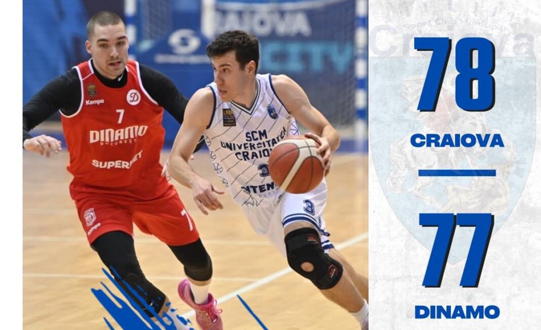 Baschetbaliștii de la SCMU Craiova s-au obișnuit cu victoriile odată cu venirea lui Tudor Costescu, iar miercuri seară au făcut o nouă „victimă“. Oltenii s-au impus pe teren propriu în fața lui Dinamo, scor 78-77, în faza optimilor Cupei României și astfel avansează în competiție.