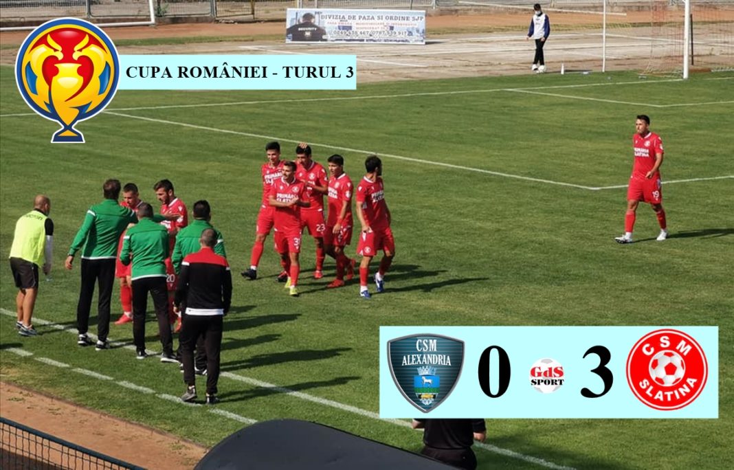 Divizionara secundă CSM Slatina s-a calificat în turul 4 al Cupei României, după ce s-a impus astăzi, cu 3-0, în Teleorman, în faţa formaţiei de Liga 3 CSM Alexandria. Golurile oltenilor au fost marcate de Marian Vlada (’18, ’55) şi Abel Stan (’88).