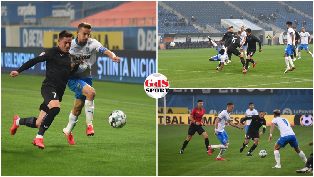 O primă repriză destul de monotonă în Bănie. Așa cum a avertizat tehnicianul Craioveio înainte de meci, formația din Clinceni a prezentat și în acest meci o apărare foarte bine organizată, iar alb-albaștrii nu au reușit să o desfacă în primele 45 de minute. Oaspeții au fost periculoși în mai multe situații, în special în primul minut, când au ratat de două ori incredibil din poziții favorabile. Universitatea a irosit, la rândul ei, două-trei ocazii importante prin Baiaram și Ivan, dar tabela a rămas intactă la pauză.