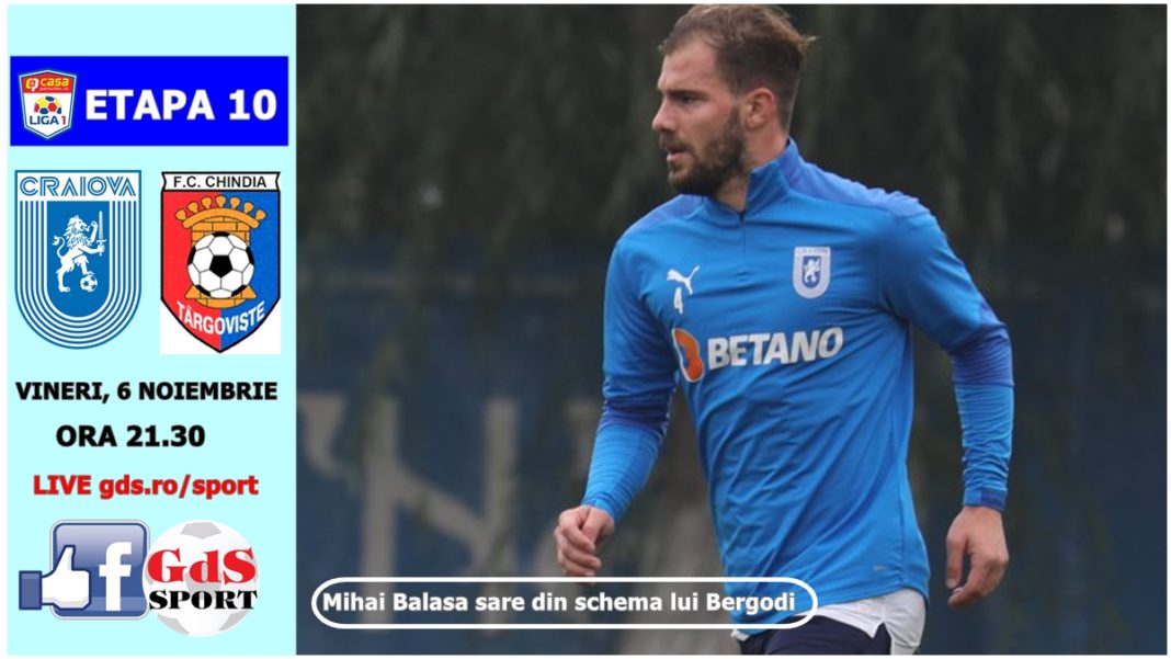 Dacă înaintea ultimului antrenament premergător meciului cu Chindia Târgoviște s-a descoperit încă un caz de Covid în tabăra Universității Craiova, în speță Nicușor Bancu, azi clubul a mai anunțat pierderea unui fotbalist. Astfel, Cristiano Bergodi nu poate conta în această seară nici pe Mihai Bălașa. Fundașul Științei „a suferit o leziune musculară și va absenta o săptămână până când va fi recuperat complet“, precizează clubul.