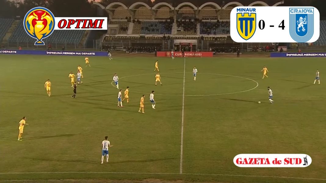 Universitatea Craiova s-a calificat în sferturile Cupei României, după ce s-a impus miercuri seară, cu 4-0, în deplasare, în faţa formaţiei Minaur Baia Mare. A fost un meci la discreția elevilor lui Laurențiu Reghecampf.