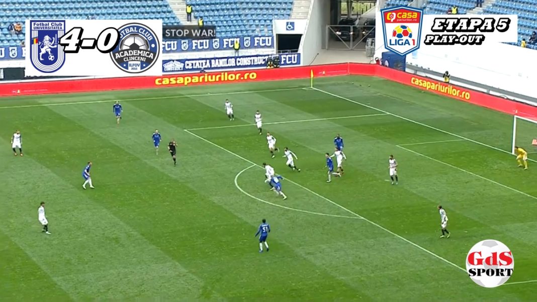 FCU Craiova a confirmat statutul de favorită în meciul de duminică, de pe teren propriu, cu Academica Clinceni. Gruparea din Bănie s-a impus fără probleme, scor 4-0, în fața ilfovenilor și au luat o opțiune importantă în privința evitării locurilor de baraj. Disputa a contat pentru etapa a 5-a din play-out-ul Ligii 1.