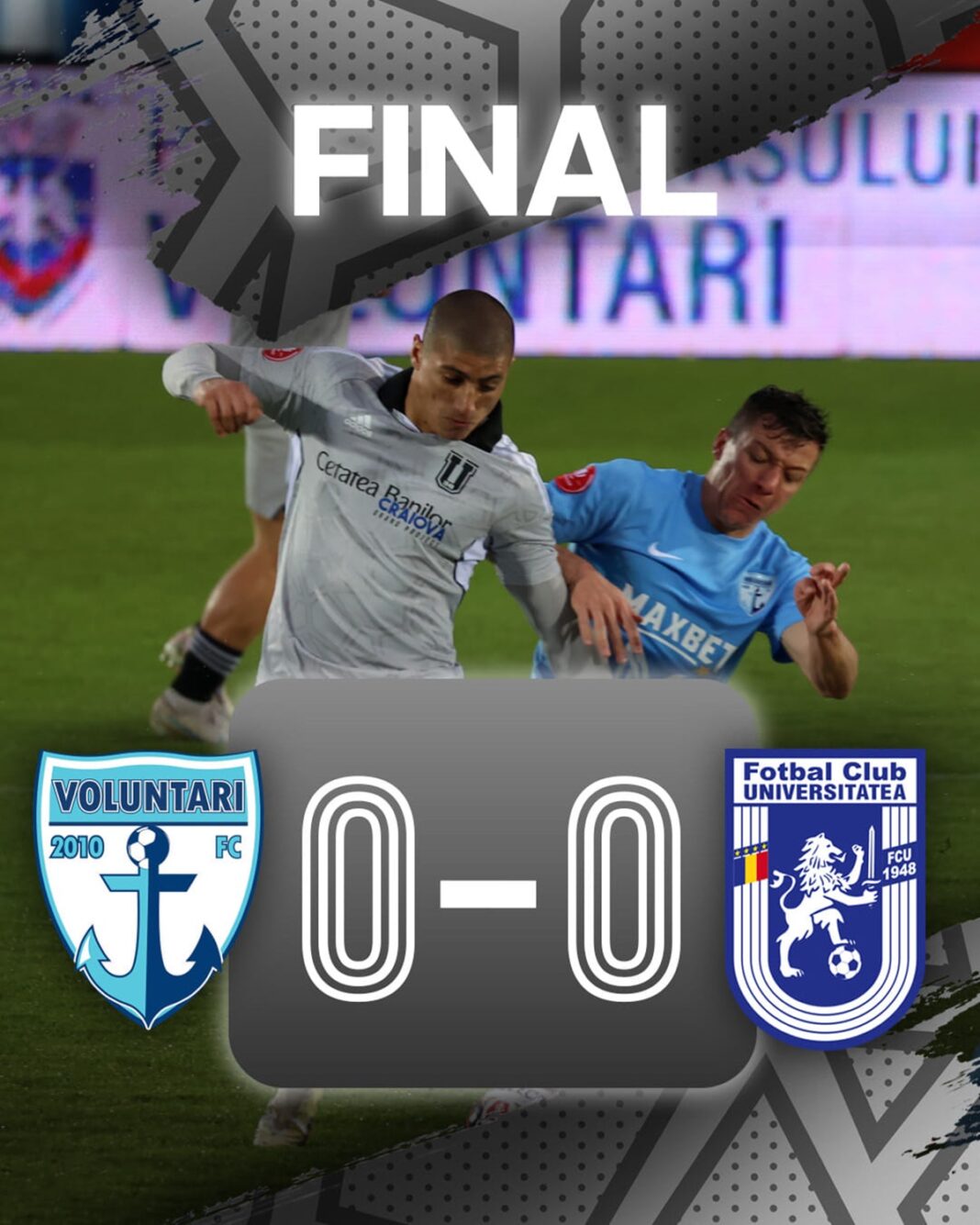 FCU Craiova a remizat, scor 0-0, în compania echipei FC Voluntari, într-o partidă anostă, susținută marți după amiază, pe stadionul „Anghel Iordănescu“. Aceasta a fost prima confruntare din cadrul etapei a 6-a din play-out-ul Superligii.