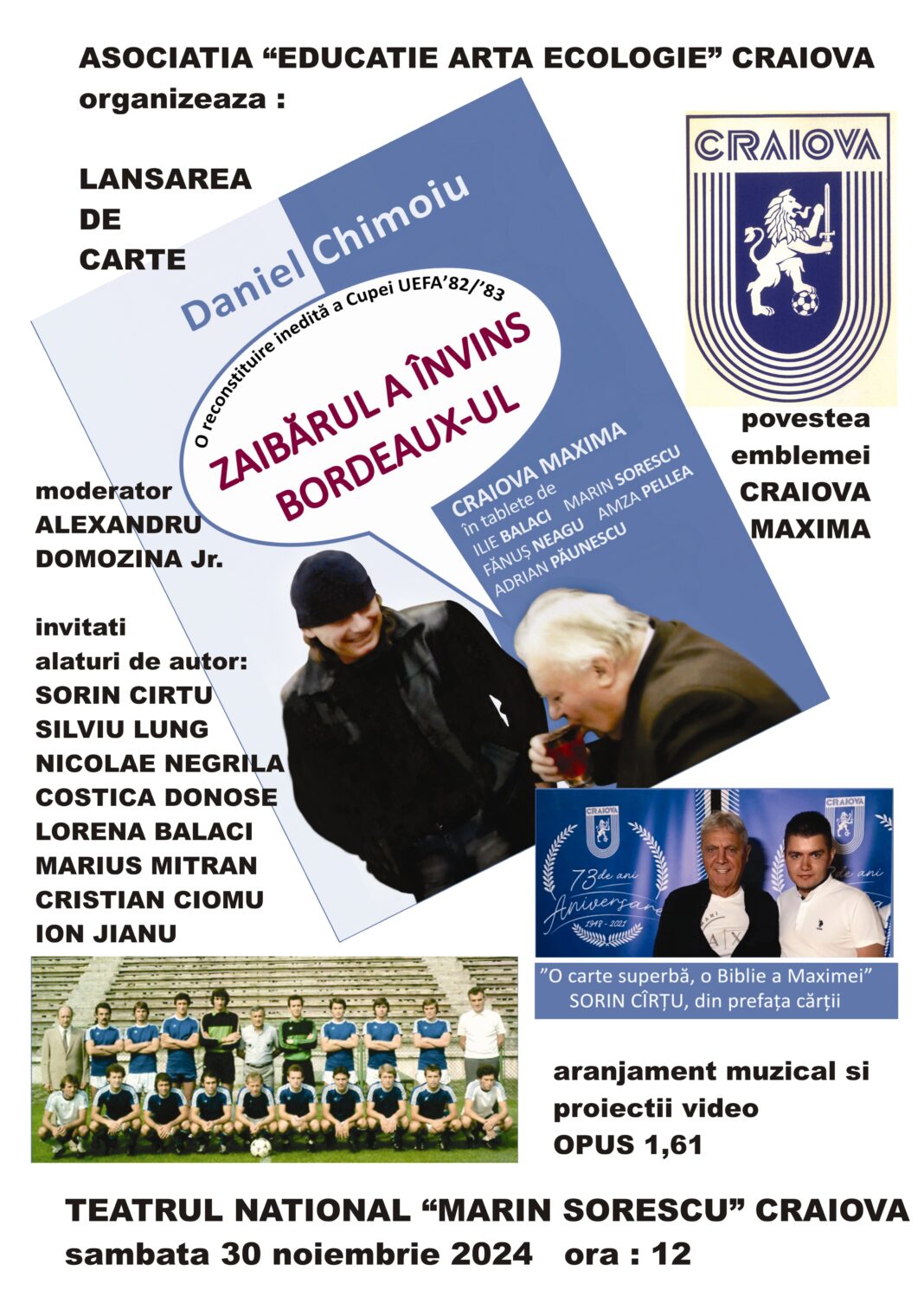 Chiar dacă nu a luat parte pe viu la „luptele“ memorabile ale Craiovei Maxima, având acum doar 23 de ani, Daniel Chimoiu, un pătimaș suporter al Științei, membru al Peluzei Nord Craiova, și-a făcut curaj și a publicat „o reconstituire inedită a Cupei UEFA ’82/’83“. Pasionat peste măsură, Daniel a adunat informații, a aflat și lucruri încă nedezvăluite și a cuprins totul într-o carte pe care a numit-o „Zaibărul a învins Bordeaux-ul“. Are o prefață semnată de Sorin Cârțu și oferă multe teme interesante, care merită citite, dar și o ilustrație care, cu siguranță, te va purta cu gândul în acele vremuri.