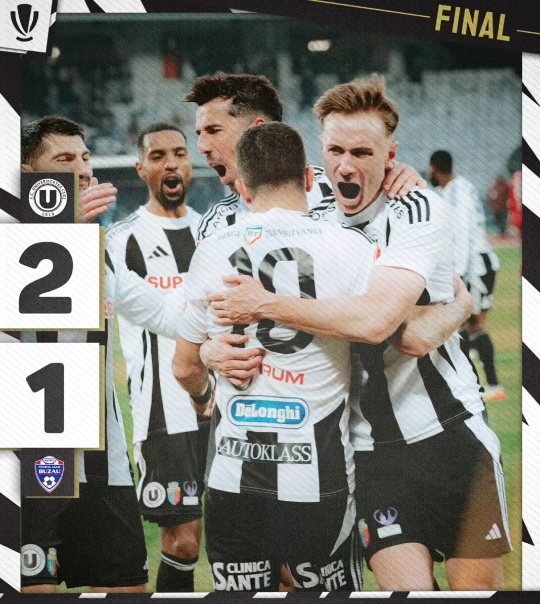 U Cluj a revenit pe prima poziţie în Superligă, după ce s-a impus greu, cu 2-1, în faţa Gloriei Buzău, într-o partidă susţinută pe “Cluj Arena”, contând pentru etapa 22.