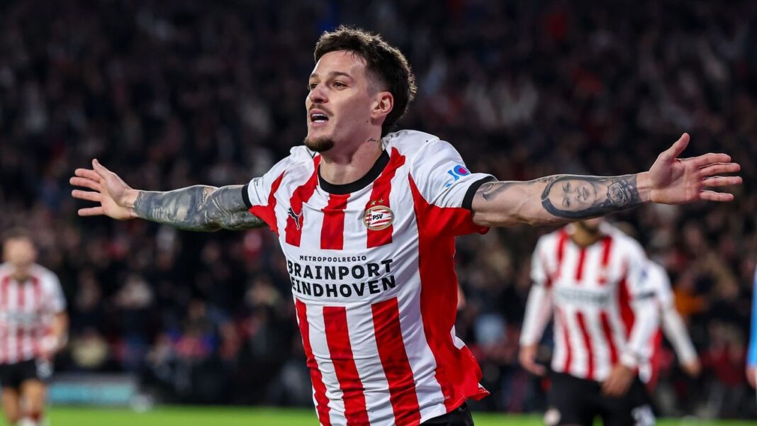 Oaspeții au deschis scorul pe Philips Stadium, prin Scott McTominay (31), dar PSV a punctat de două ori până la pauză, prin Alessandro Buongiorno (autogol, 35) și Ismael Saibari (38). Campioana Olandei s-a dezlănțuit după pauză, profitând și de faptul că Napoli a rămas în zece, Lorenzo Lucca fiind eliminat (76). Pentru gazde au mai înscris Ricardo Pepi (87) și Couhaib Driouech (89), în timp ce McTominay a realizat dubla (86).