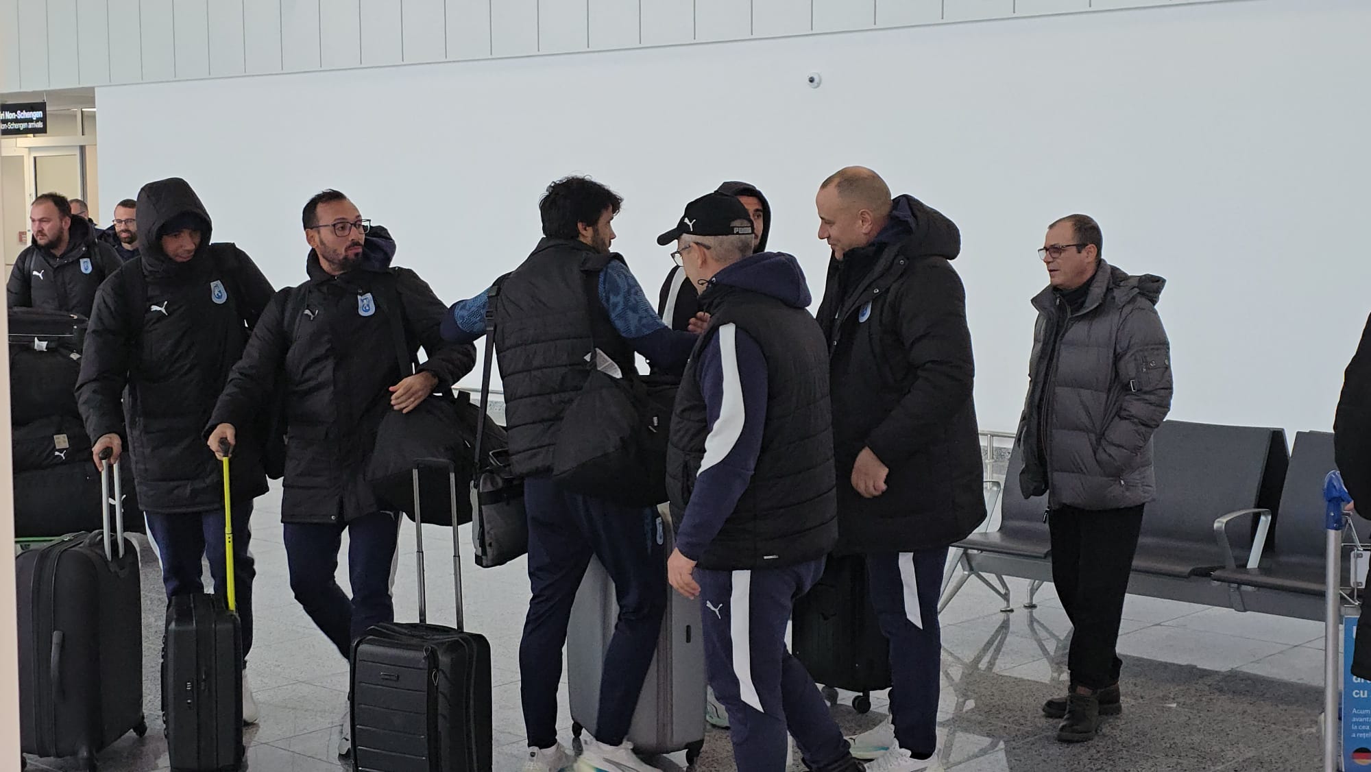 Imediat după aterizare (n.r. în jurul orei 10:50), jucătorii olteni s-au înfofolit cu glugi și geci groase și s-au urcat rapid în autocar.