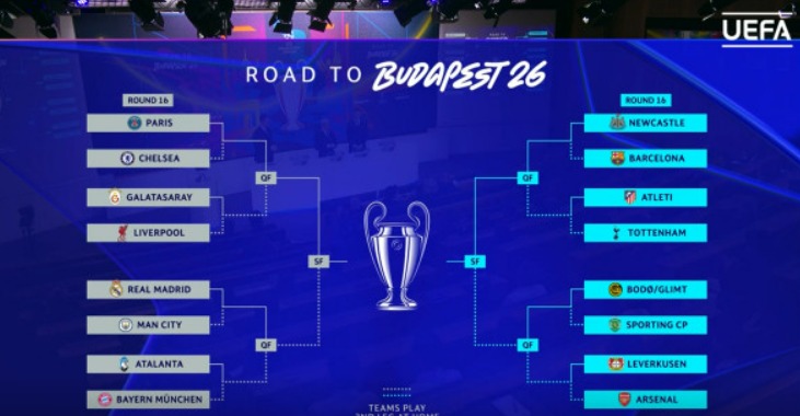 Vineri, 27 februarie, de la ora 13:00, s-a aflat cum arată tabloul complet al optimilor din UEFA Champions League. Cele 16 echipe luptă pentru marele trofeu, iar la tragerea la sorți de la Nyon s-au stabilit inclusiv împerecherile din sferturi și din semifinale.