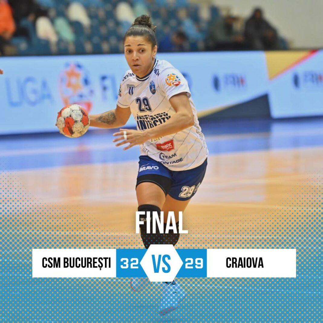 În Capitală s-au întâlnit duminică după masă două dintre cele mai în formă echipe din campionat. Chiar dacă valoarea CSM-ului este incontestabilă, Craiova a pornit cu multă încredere în joc și le-a forțat pe gazde să alerge după egalare. După minute bune de avantaj pentru oltence, la pauză s-a intrat nedecis, scor 17-17. CSM a început în forță partea a doua a partidei, s-a desprins la șase goluri, scor 26–20 și a fost imposibil de prins din urmă până la final. S-a încheiat 32-29 pentru campioana României, care îi produce Craiovei cel de-al treilea eșec din acest campionat.