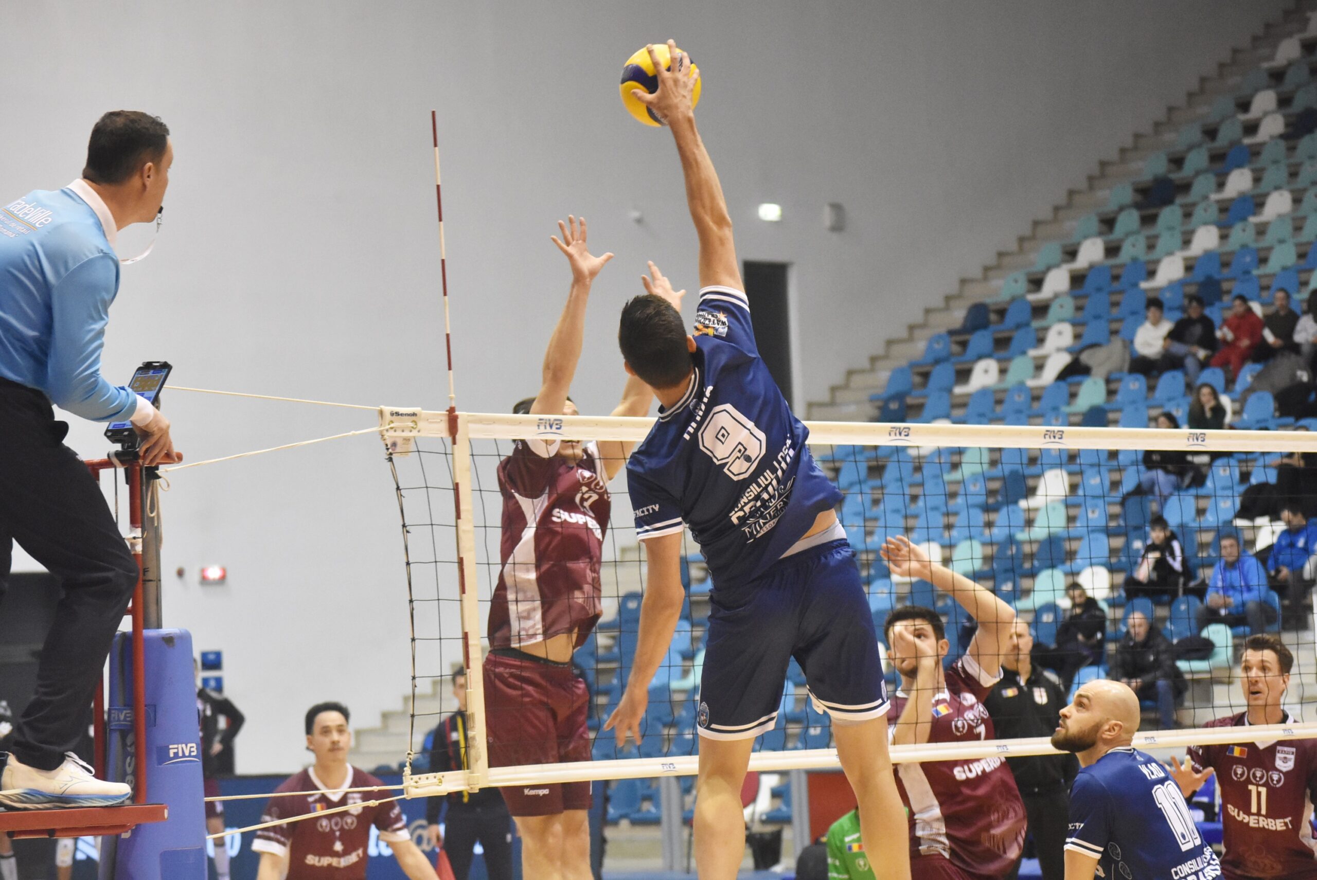 Revenind la jocul de miercuri, partida cu Rapid a debutat, puțin surprinzător, cu oaspeții în avantaj. Mai mult de atât, Rapidul s-a ținut de treabă pe tot parcursul primului set și i-au ținut pe alb-albaștrii în permanență la două-trei lungimi în spate. Scorul s-a mai strâns pe final de set, dar la 24-23 bucureștenii au câștigat mingea decisivă și au trecut în față pe tabelă.