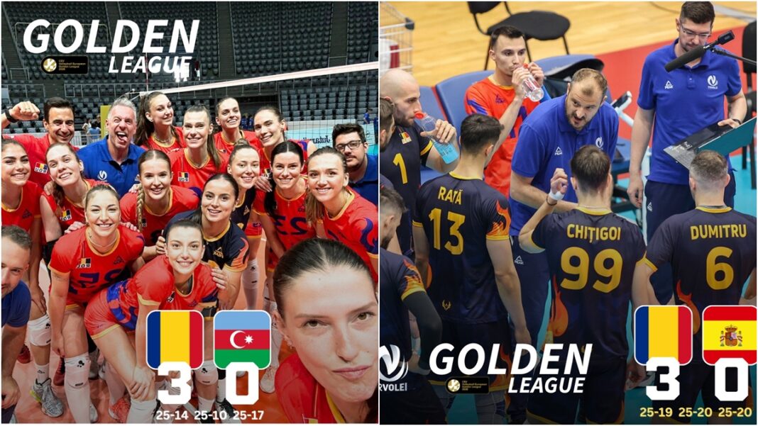 La rândul său, naționala masculină a României a învins formația Spaniei cu scorul de 3-0 (25-19, 25-20, 25-20), sâmbătă, la Zadar (Croația), în Golden League. Tricolorii au obținut a treia lor victorie în tot atâtea meciuri, după o oră și 19 minute.