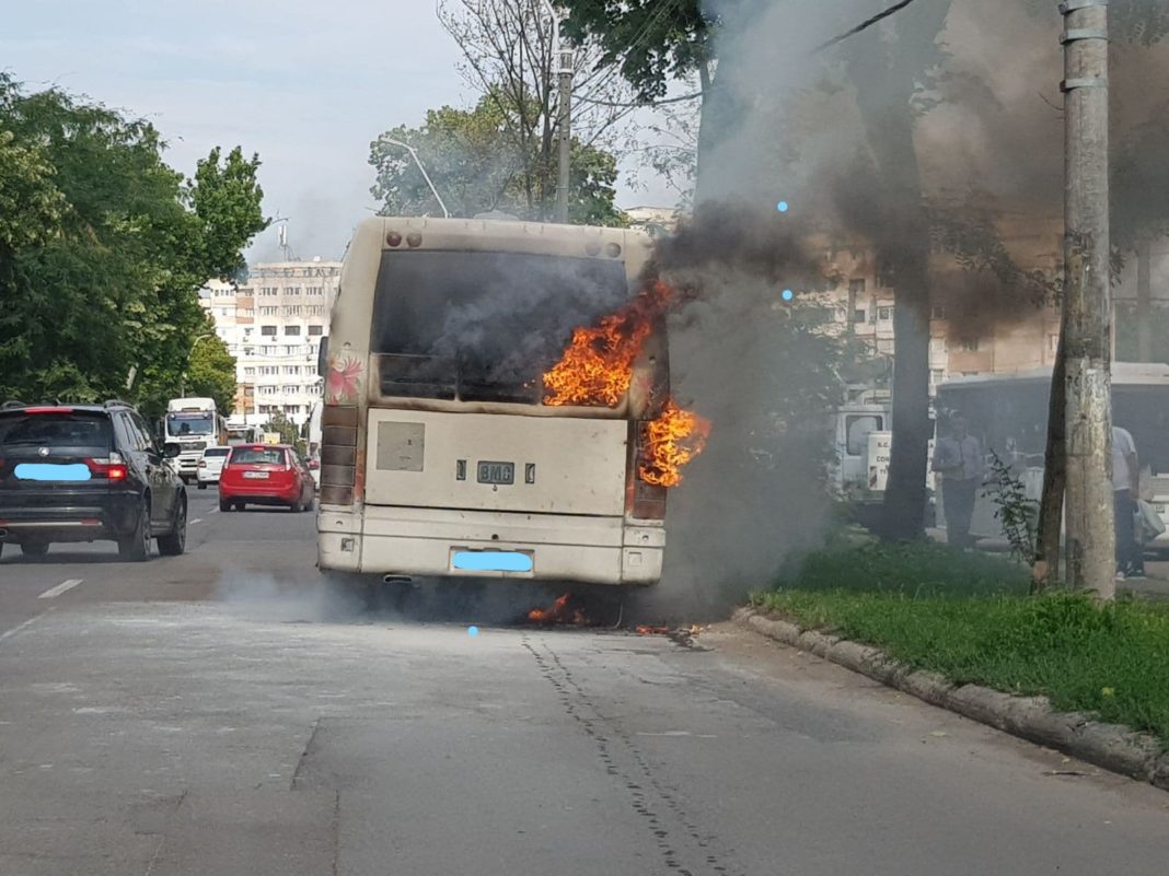 Braşov: Un autobuz cu călători a luat foc