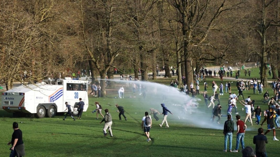 Sâmbătă au intervenit 600 de poliţişti, mai multe tunuri de apă şi o unitate de jandarmi călare. Ei s-au poziţionat în jurul parcului, înainte de sosirea participanţilor. Premierul Alexander De Croo le-a cerut oamenilor cu o zi înainte să nu participe la o manifestare interzisă.