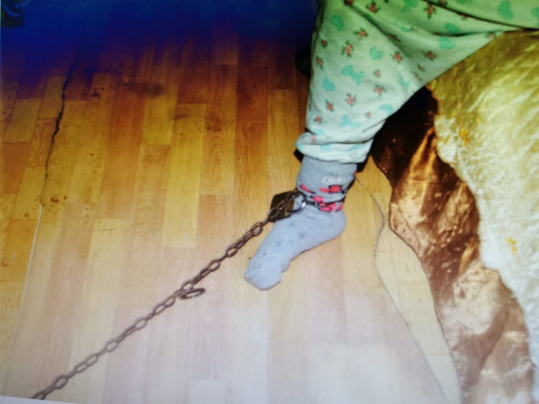„La data de 13 mai, ora 11.00, polițiștii Secției Rurală Bârca, în baza datelor și informațiilor obținute, împreună cu reprezentanții autorității locale, s-au deplasat în comuna Cerăt, la locuința unei femei de 53 de ani, bunica unei minore de 10 ani, căreia îi este și asistent personal. Cu ocazia verificării la domiciliu, în una dintre camere, a fost găsită minora de 10 ani, legată cu un lanț de piciorul stâng, asigurat cu un lacăt, lanț legat de piciorul patului. Minora de 10 ani și fratele acesteia de 15 ani au fost preluați de reprezentanții DGASPC Dolj, minora fiind în afara oricărui pericol”, au precizat oamenii legii.