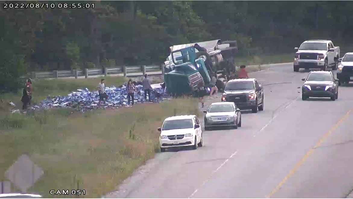 Un șofer care transporta mii de cutii de bere a pierdut toată încărcătura pe drum, după o manevră greşită în timp ce se deplasa pe o autostradă din Kentucky.