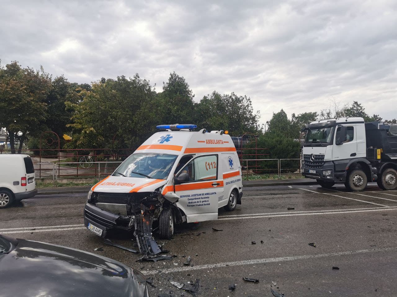 În urma impactului, două persoane aflate în autoturism au fost rănite suferind un traumatism, toracic şi unul de coloană cervicală. La faţa locului au sosit două ambulanţe, care au transportat victimele la spital pentru evaluare medicală.
